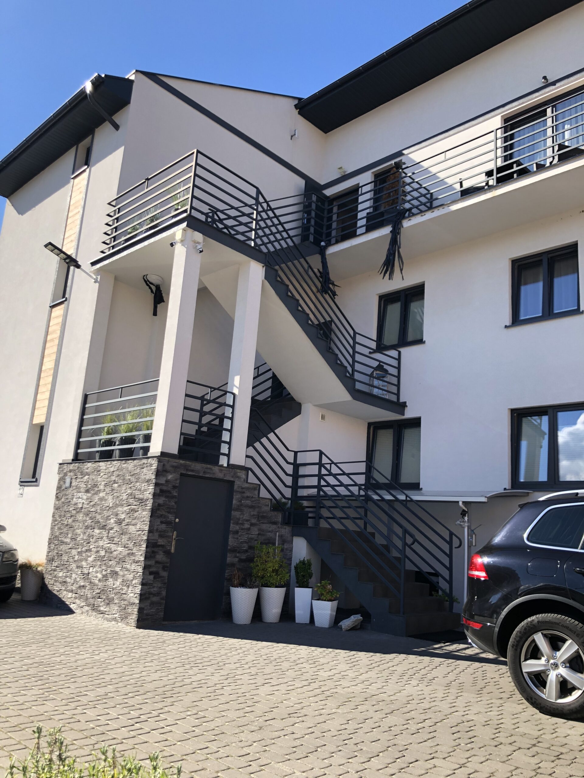 Jest to wolnostojący budynek który posiada prywatny, ogrodzony, monitorowany parking dla samochodów osobowych a także busów.